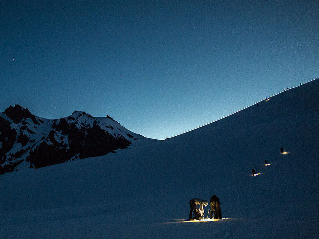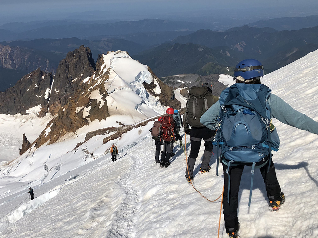 5 Day Mount Baker Glacier Mountaineering Course – Learn how to climb big mountains on the second most glaciated peak in the Lower 48 States! In this course, you will establish a foundation of essential glacier mountaineering skills and put them to use while ascending to the summit of Mount Baker. The curriculum is designed for climbers seeking to develop the skills they need to travel safely and independently in glaciated environments or climb larger objectives such as Denali, Aconcagua and the high peaks of the Himalaya. You will practice the fundamentals of glacier mountaineering and snow climbing, including crampon and ice axe technique, self-arrest, rope team travel, crevasse rescue and more. Breakfast, dinner and hot drinks are provided on the mountain.